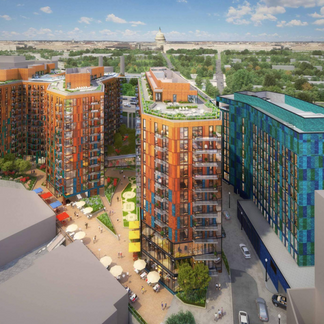 KTA Group is proud to have provided Mechanical and Plumbing design services for the east parcel of the CSX development site, with Virginia Avenue to the north, New Jersey Avenue to the east, Eye Street to the south, and an existing coal yard to the west. The elevated Southeast Freeway crosses over the north side of the site. The impressive site boasts three structures connected by a shared below grade garage. Buildings #2 & #3 are apartment buildings connected by a glass floor skybridge on the rooftop level. The mechanical & plumbing engineering was done as a design-build partnership with Total Mechanical Solutions. Building #1 is a 225-key hotel building. KTA provided plumbing design in collaboration with Inspiration Plumbing Inc.